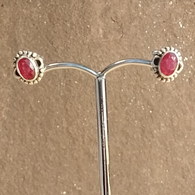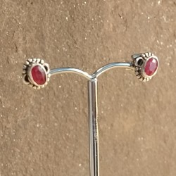 Pendientes de Plata botón, con Rubí tallado y montura labrada.
