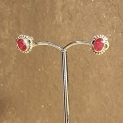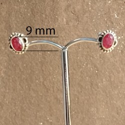 Pendientes de Plata botón, con Rubí tallado y montura labrada