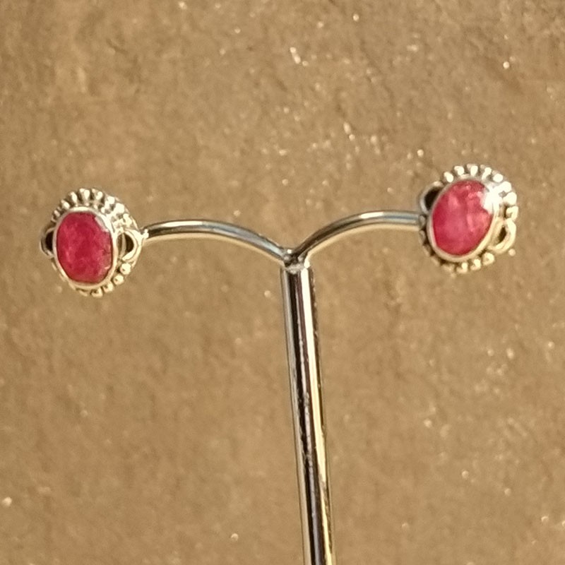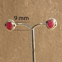 Pendientes de Plata botón, con Rubí tallado y montura labrada