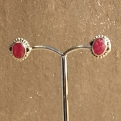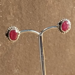 Pendientes de Plata botón, con Rubí tallado y montura labrada.