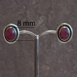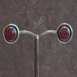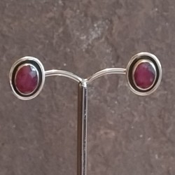 Pendientes de Plata botón, con Rubí tallado y montura elaborada con borde y un fondo negro