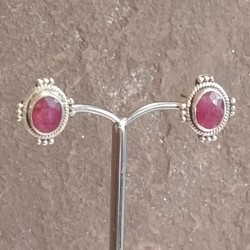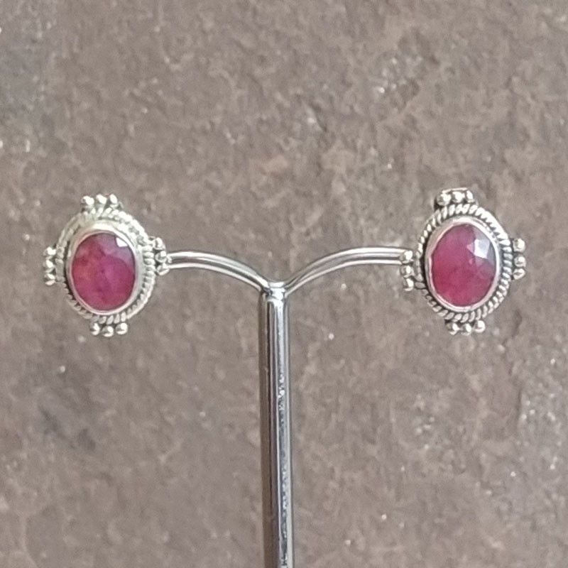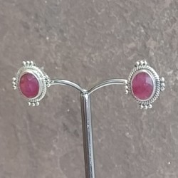 Pendientes de Plata botón, con Rubí tallado y montura labrada.