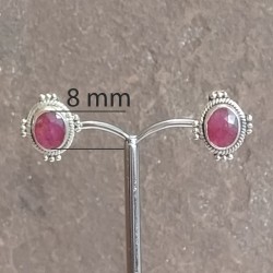 Pendientes de Plata botón, con Rubí tallado y montura labrada