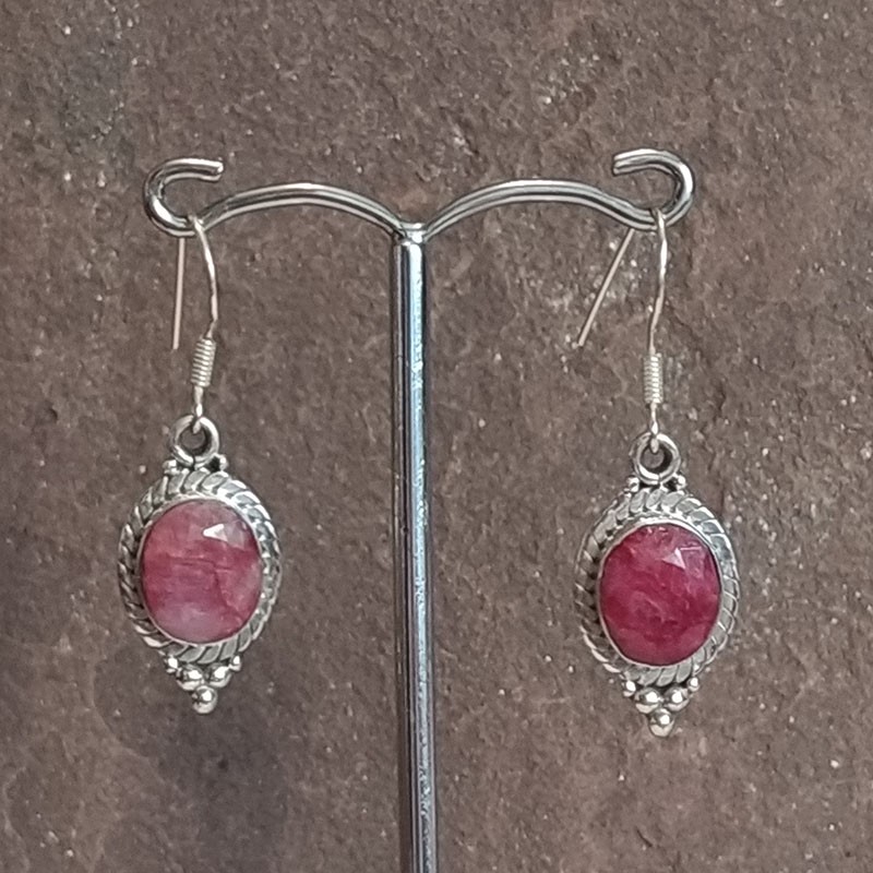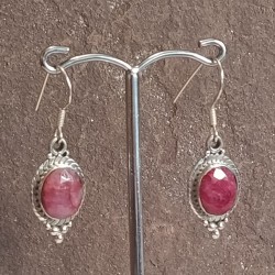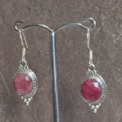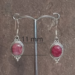 Pendientes de Plata botón, con Rubí tallado y gancho