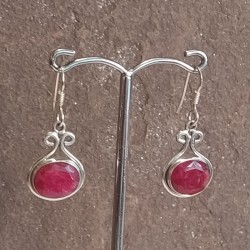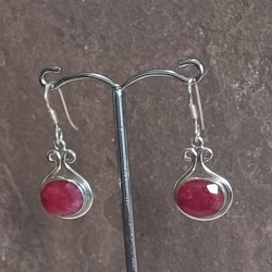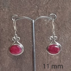 Pendientes de Plata botón, con Rubí tallado y gancho