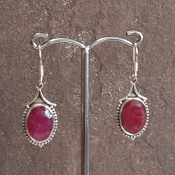 Pendientes de Plata botón, con Rubí tallado y gancho