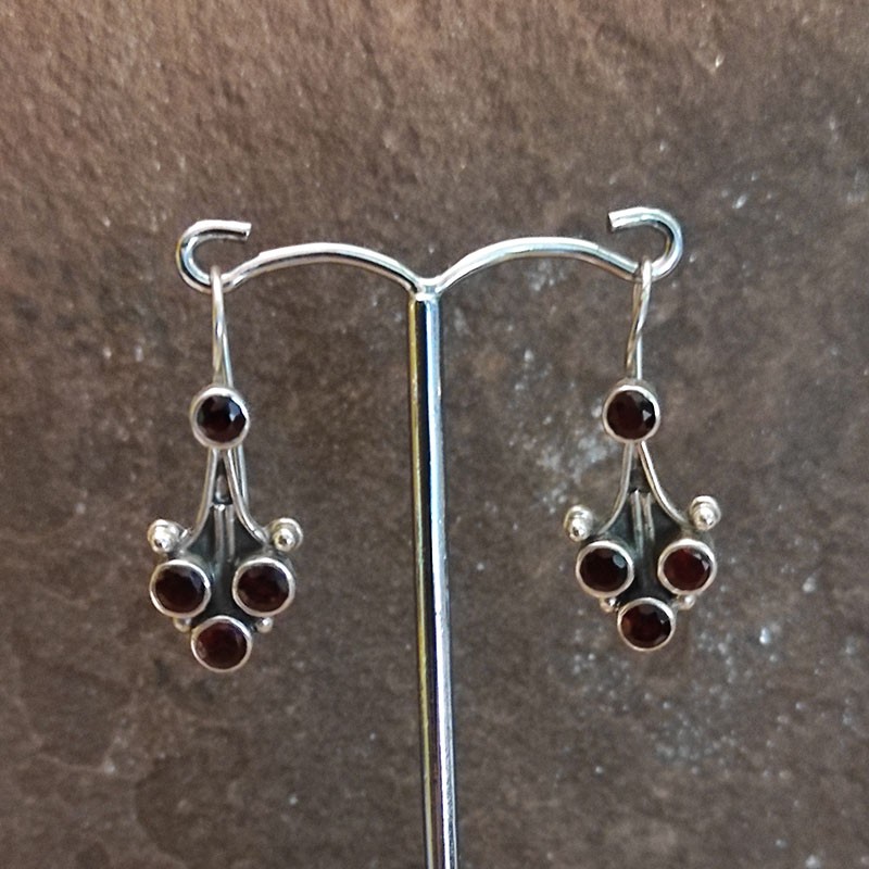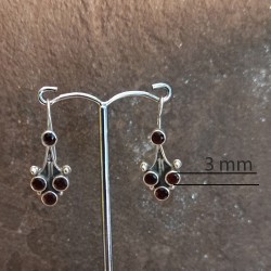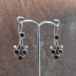 Pendientes de Plata con ganchos, Cuarzo Rosa en combinación con Granate