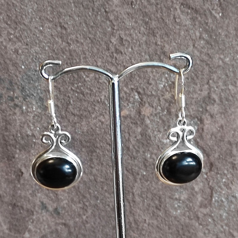 Pendientes de Plata largo con ganchos y Ónix pulido.