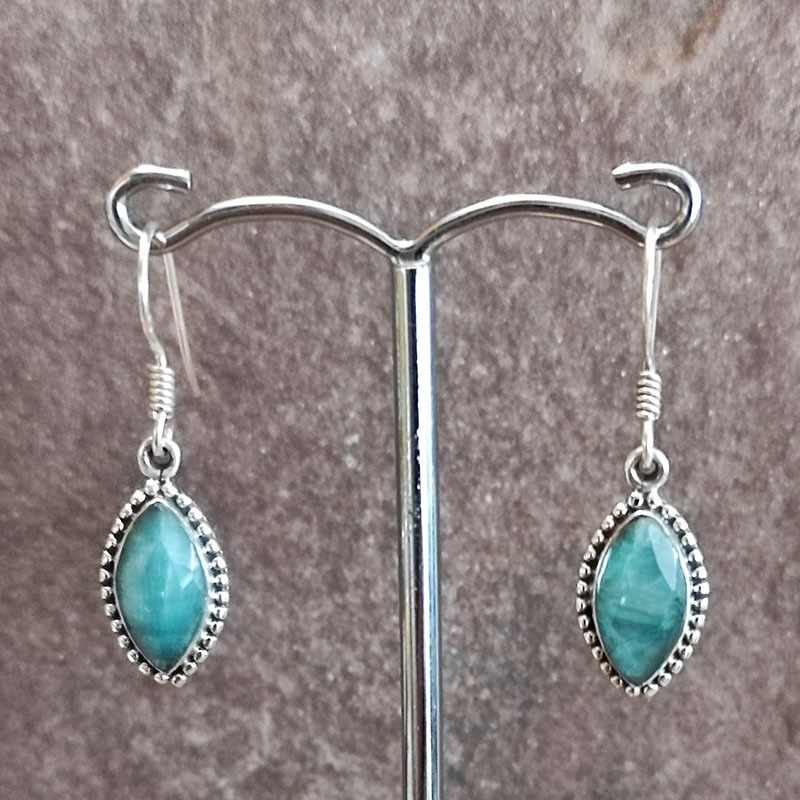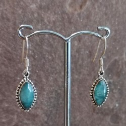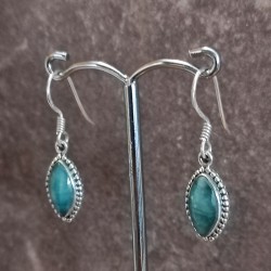 Pendientes de Plata Esmeralda con montura labrada ovalada y Ganchos