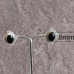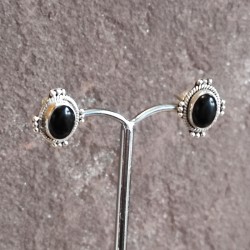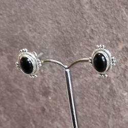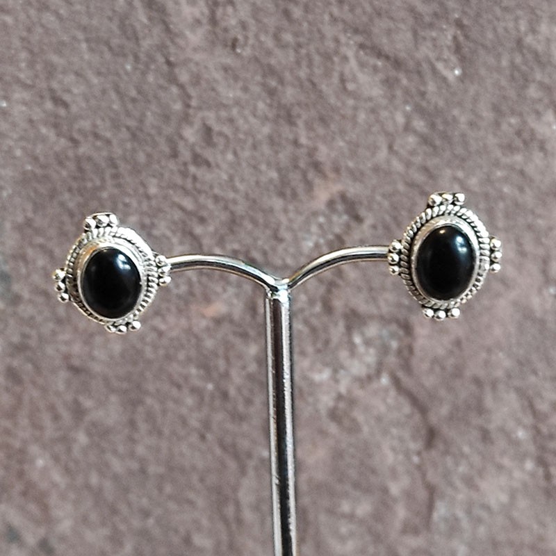 Pendientes de Plata largo con la montura en filigrana, ganchos y Ónix pulido.