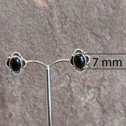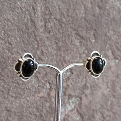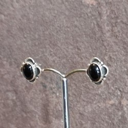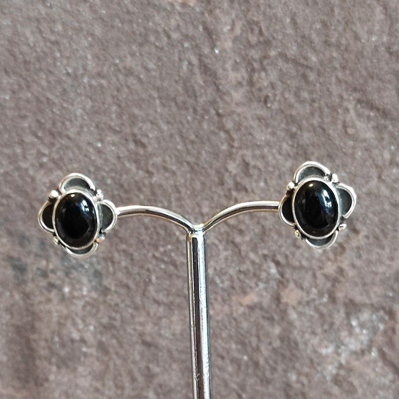 Pendientes de Plata largo con la montura trabajado, ganchos y Ónix pulido.
