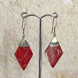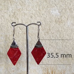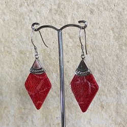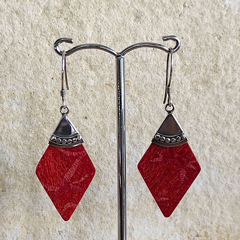 Pendientes de Plata Coral Con forma de rombo y gancho