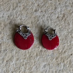 Pendientes de Plata con Coral montado como Aro