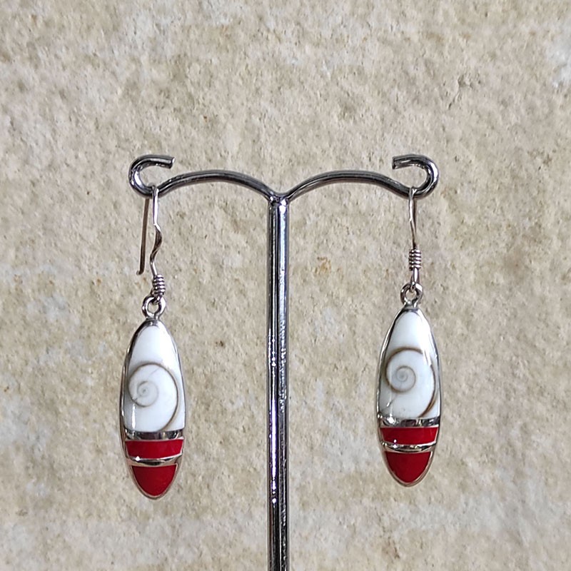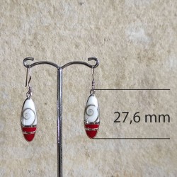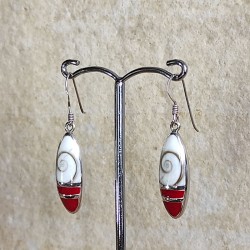 Pendientes de Plata Coral y Ojo de Shiva ovalado con gancho