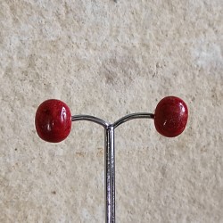 Pendientes de Plata Coral de Botón Ovalado con Tuerca