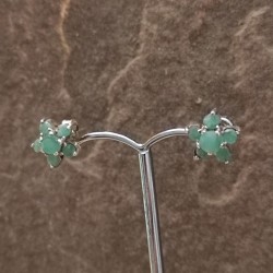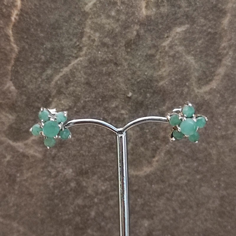 Pendientes de Plata con Forma de Flor y Esmeraldas Talladas