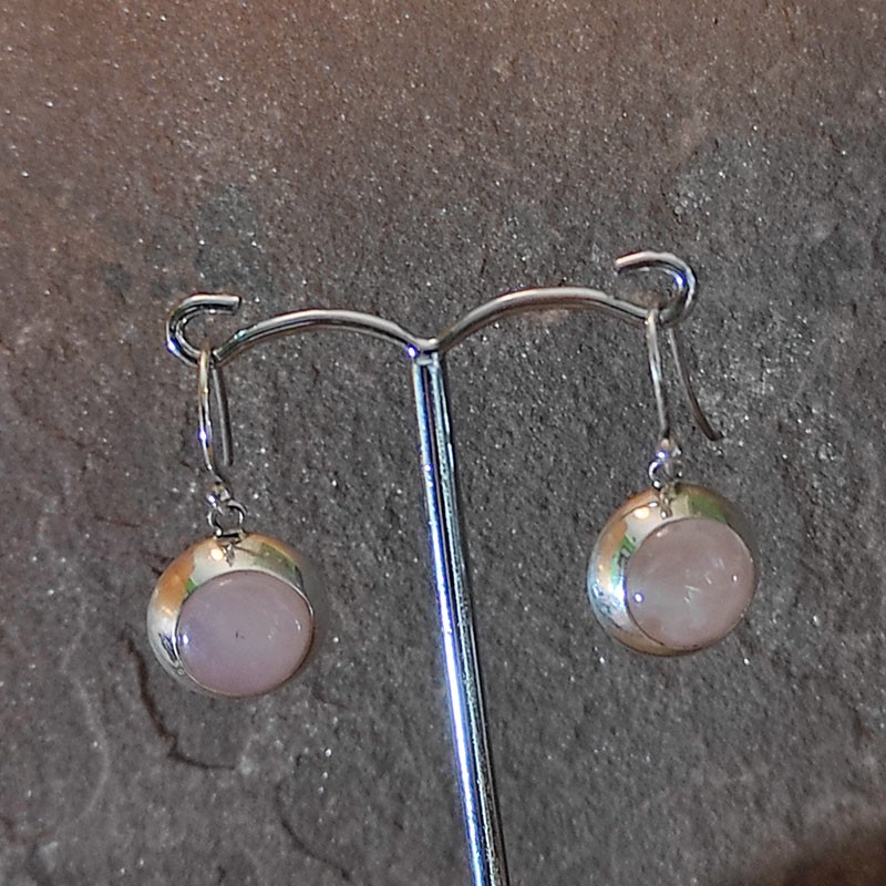 Pendientes de Plata con Cuarzo Rosa y con Ganchos