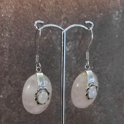 Pendientes de Plata con ganchos y Cuarzo Rosa