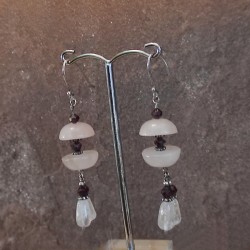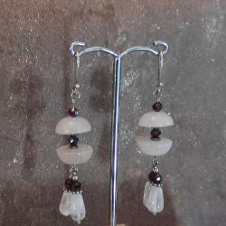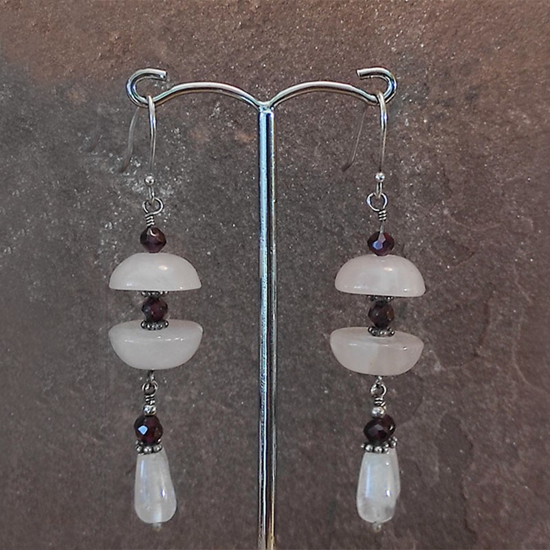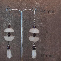Pendientes de Plata con ganchos, Cuarzo Rosa en combinación con Granate