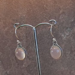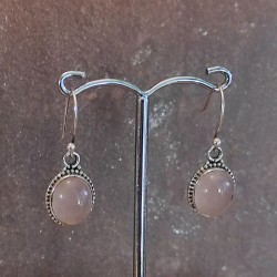 Pendientes de Plata montadura labrada con ganchos y Cuarzo Rosa