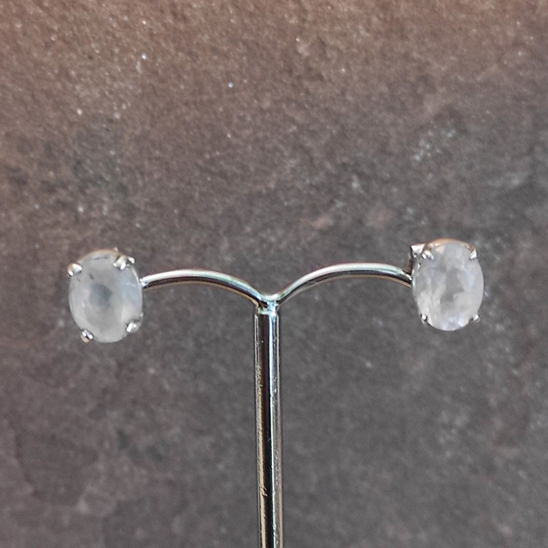 Pendientes de Plata botón con Cuarzo Rosa