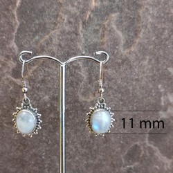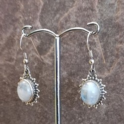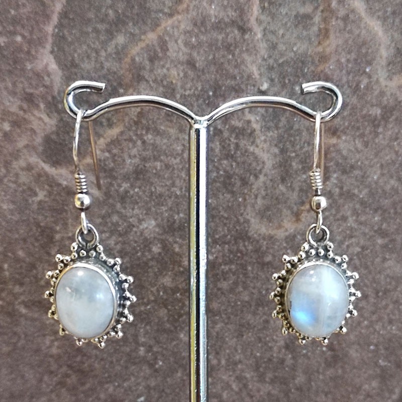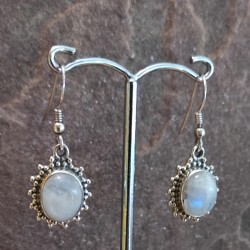 Pendientes de Plata Labrado con Piedra Luna y Gancho