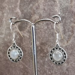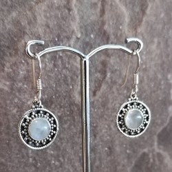 Pendientes de Plata Labrada, piedra Luna con Gancho