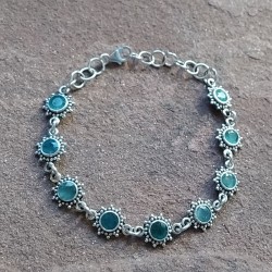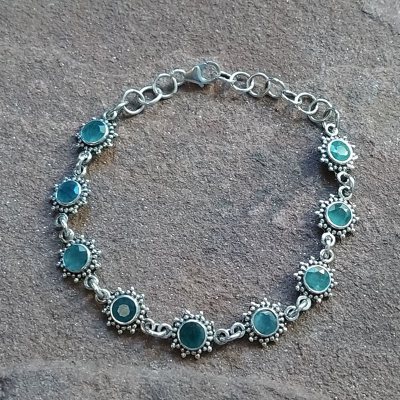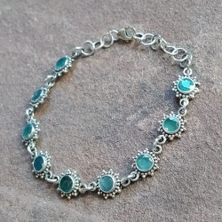 Pulsera de Plata con Esmeraldas talladas y monturas labradas en forma de sol