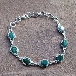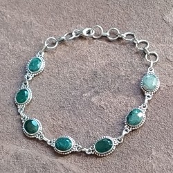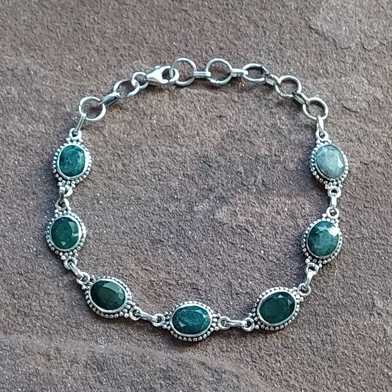 Pulsera de Plata con Esmeraldas talladas y monturas labradas
