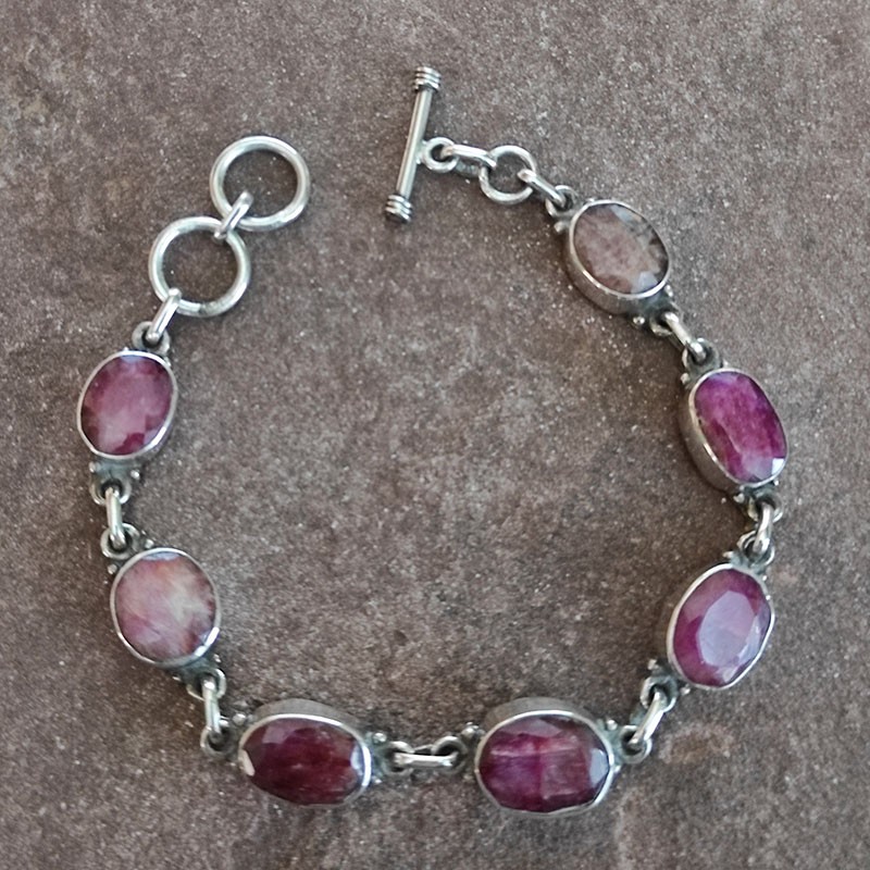 Pulsera de Plata con Rubíes Tallados